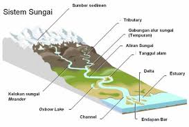 - Flood plain, merupakan daerah dataran banjir. Menurut tempatnya dibedakan menjadi;